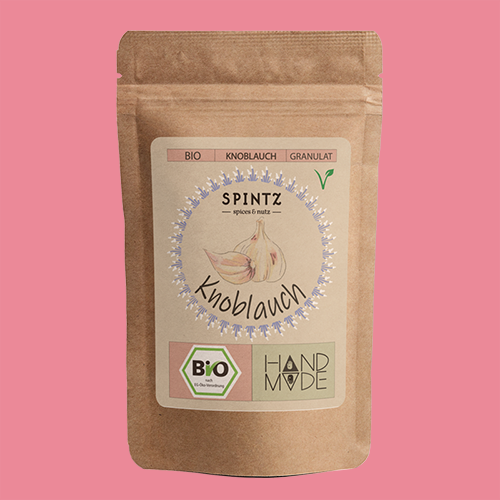 Bio Knoblauch Granulat mit intensivem, aromatischem Knoblauchgeschmack. Ideal für Marinaden, Saucen, Gemüse-, Fleisch- und Fischgerichte.