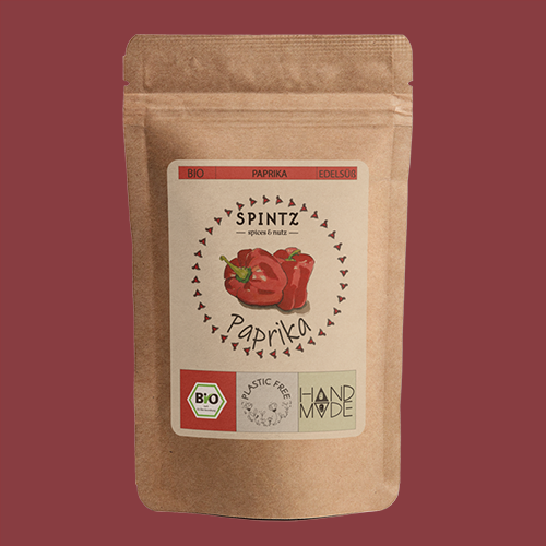 Bio Paprika Edelsüß mit süßlich-fruchtigem Geschmack und leuchtend roter Farbe. Ideal für Gulasch, Eintöpfe, Gemüsegerichte, Saucen und Dips.