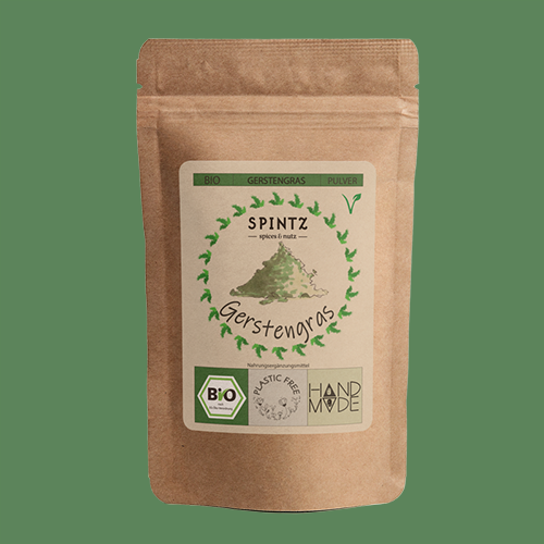 Bio Gerstengras Pulver mit mild-herbem, grasigem Geschmack. Ideal für Smoothies, Säfte, Shakes oder als tägliche Nahrungsergänzung.