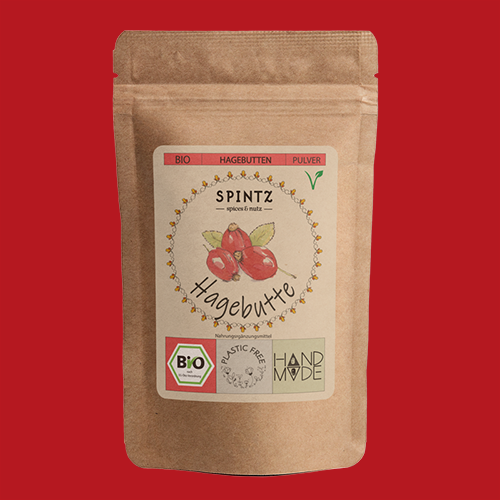 Bio Hagebutten Pulver mit fruchtig-herbem Geschmack und hohem Vitamin-C-Gehalt. Ideal für Smoothies, Joghurt, Müsli oder als Zutat in Backwaren.