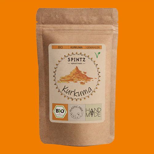 Bio Kurkuma Pulver mit warm-würzigem, leicht erdigem Geschmack und intensiver gelber Farbe. Ideal für Currys, Suppen, Reisgerichte, Smoothies und Goldene Milch.