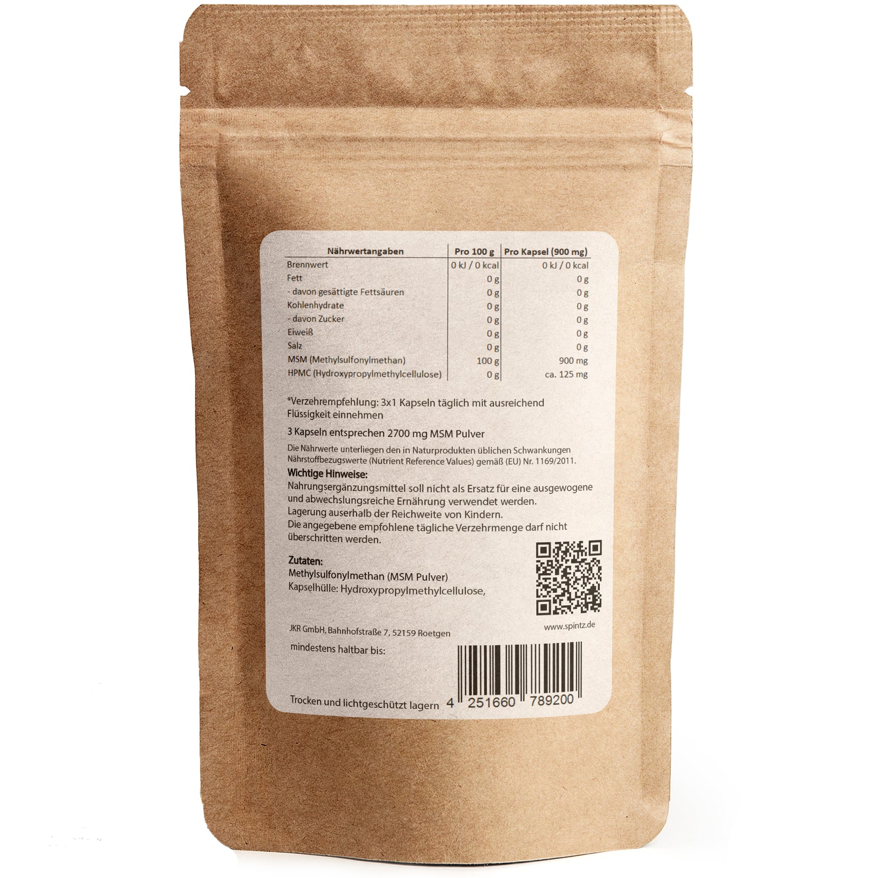 Bio MSM Kapseln mit hochwertigem Methylsulfonylmethan (MSM Pulver) – eine natürliche organische Schwefelverbindung, die im Körper vielfältige Funktionen unterstützt. Ideal zur täglichen Ergänzung einer ausgewogenen Ernährung.